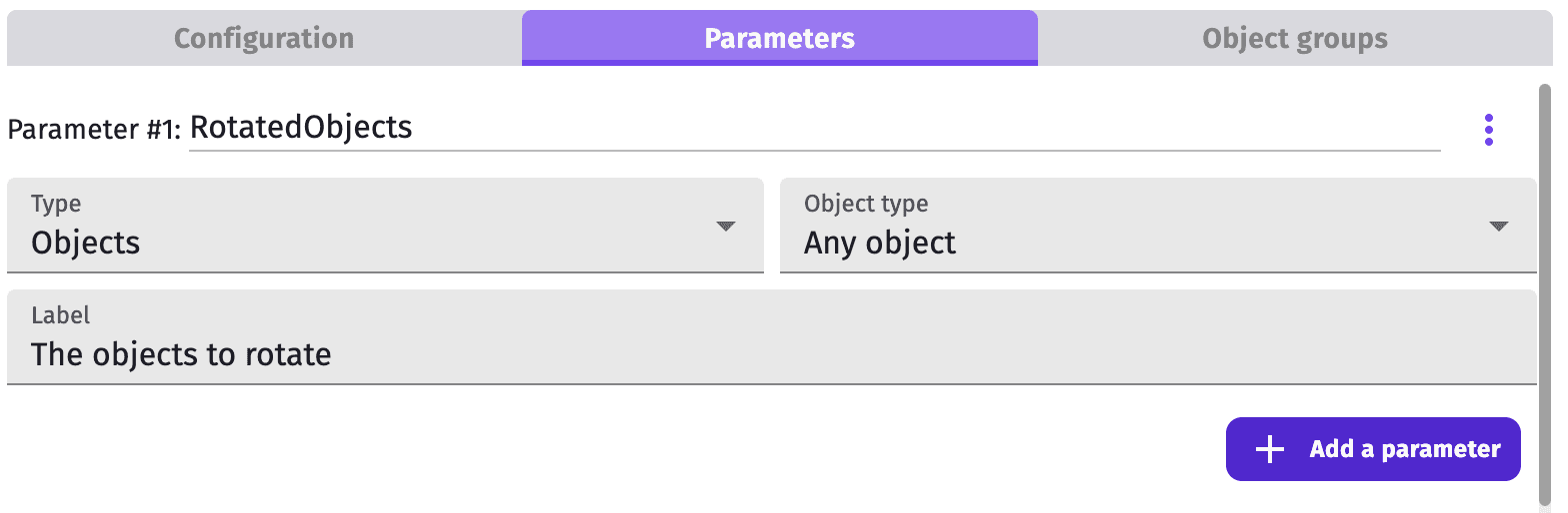 Variables can be useful within functions for intermediary results or to keep a state in the extension. You can declare new variables that are accessible only inside the extension by clicking on Extension global variables or Extension scene variables.
