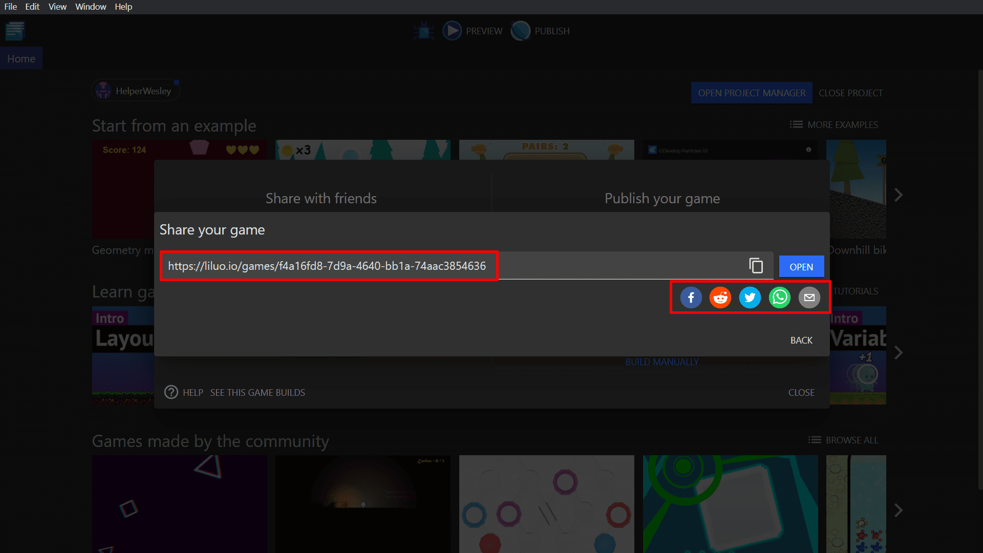 To post your game publicly on gd.games, click on the "publish this build to the game's page" button below the link. gd.games is GDevelop's game hosting platform, where free games created with GDevelop can be shared and played.