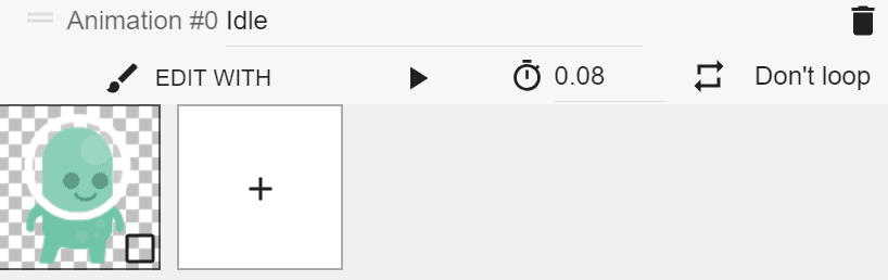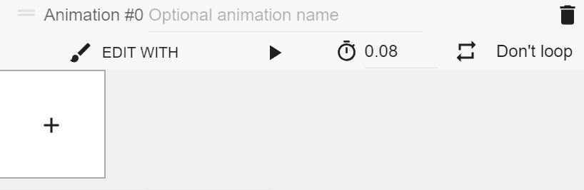 For our first animation, we want to create an Idle animation. Click on the big + button which will open a dialog box to load an asset. Note that we can also add multiples images, but for this animation, we only require one.