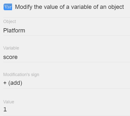 A Score system is a necessary element in every game. Adding this to our game is very easy as we don't need to add any new events. We are going to edit some of the events that we have already created to accommodate this system. We want the score to start from 0 every time the game starts. The score keeps updating until the Game Over state is reached. First, let's make an object variable to store this score value.