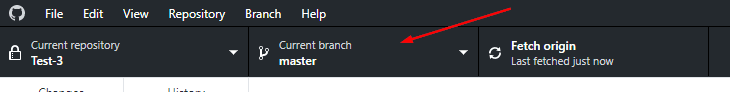 1. Within GitHub Desktop, click the Current branch drop down.